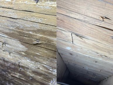 If you have a damp crawlspace, you almost certainly have mold under your home. And if you look, you will very likely see it growing on the wooden subfloor and supports just beneath your feet. We can treat the wood and eliminate both the mold AND the conditions allowing it to thrive! We are Certified Mold Specialists under the International Restoration Institute.